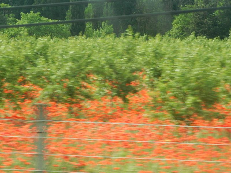 FranceRS22 -- Bad picture from moving bus - but it's a vineyard with poppies between the rows of vines! Beautiful.