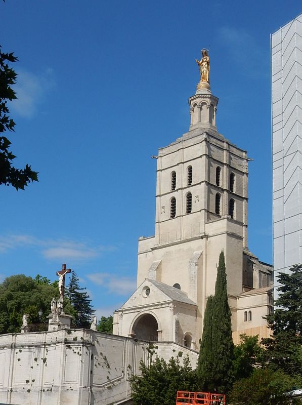 FranceRS22 -- Golden Virgin Mary atop the Cathedral of Our Lady of Doms (12th century) next to Papal Palace