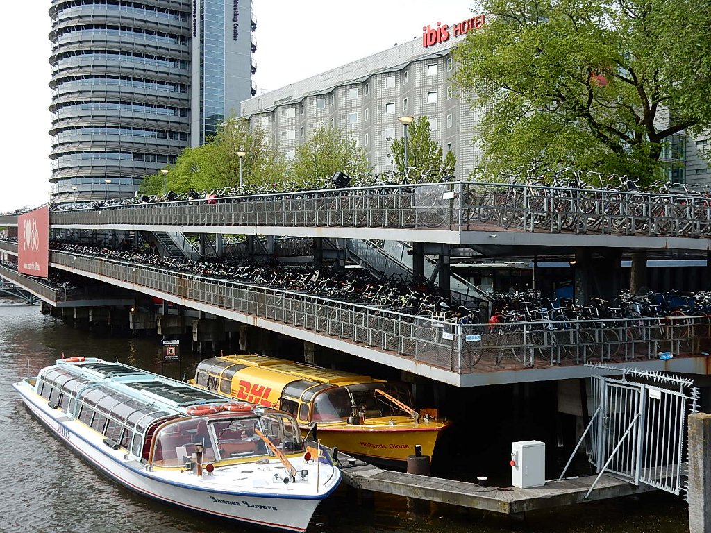 time. The picture to the left above is an enormous bike garage just outside of Central Station. Yes, "everyone" in Amsterdam rides a bike and so parking is necessary. On the right is the first canal picture I took as we were walking to the B&B - the Singel. Both the bikes and the canals became very familiar sights during our time here.