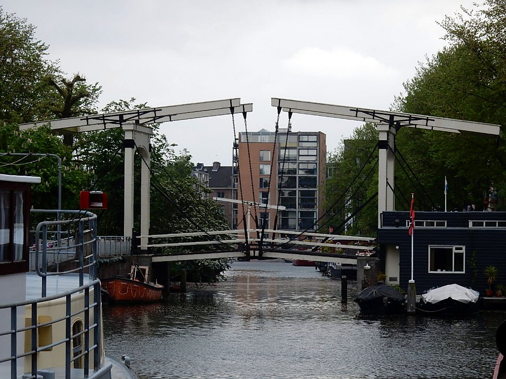 enough for two people so we ended up After we got a little bit settled, we hiked a few more blocks to one of the nearby Albert Heijn grocery stores where we were pleasantly surprised to find most of the prices quite reasonable. The people were all very helpful and pleasant - even when we got into the wrong line. There was a credit card line but it only takes Maestro so we had to transfer back to the "cash" line. That first night we had eat-in suppers that we had just bought, some took showers and we all crashed around 6 PM. I slept for 2 hours then woke up and it was still light. The birds were very noisy about getting themselves to bed! I got back up, took my shower, had a second helping of my microwave macaroni and marinara sauce, drank a couple more glasses of water to work on rehydrating. I read some email and Facebook and went back to bed about 10 PM. The object was to sleep the rest of the night and get onto Amsterdam time! Saturday May 16