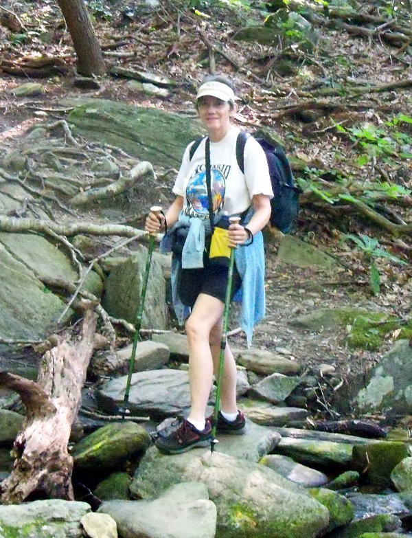 Barb crossing a creek and John