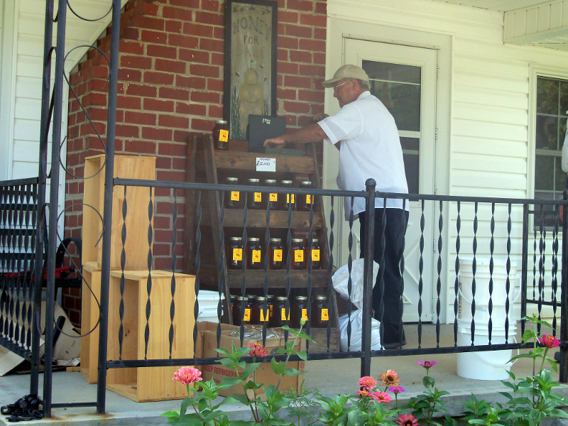 bought some honey (Edd at left with the honey display on the porch),