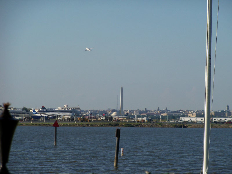 (one at left).Tuesday night we went to dinner with Deb, her friend Ron and our old college friend, Jonathan, at the Indigo Landing - a waterfront restaurant right across the Potomac River from Reagan Airport. We ate on the terrace and it was lovely.
