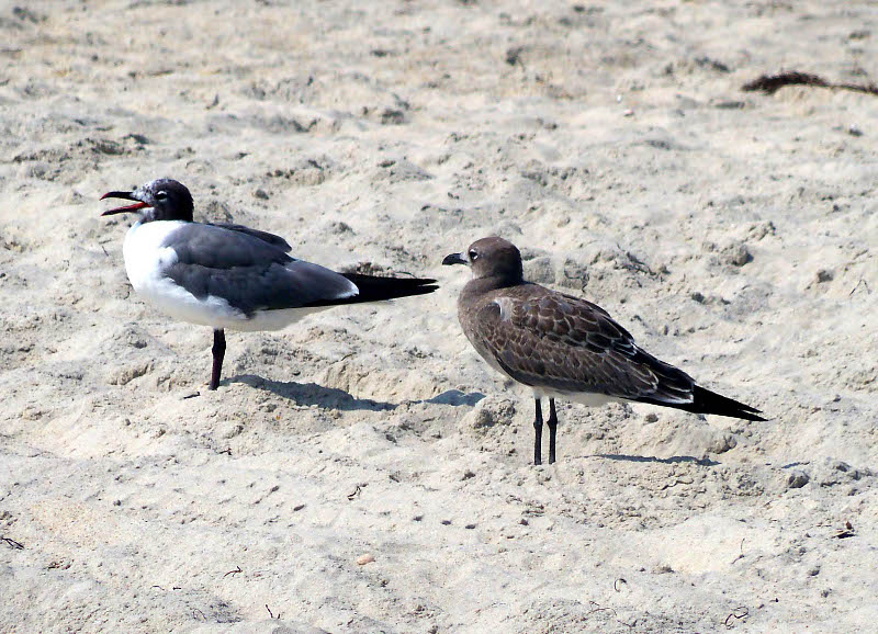 shore birds: laughing gulls at right.We went up to Kill Devil Hills for lunch at the Plaza Azteca Mexican restaurant – great food, low prices, very enjoyable. After lunch, I did some laundry and caught up with Krystal while John and Nathan did some errands, including putting air in our tires. Nathan grilled shrimp and we had potato salad and corn on cob for supper. Have I said yet what wonderful friends these are? We went to bed around 10 PM with