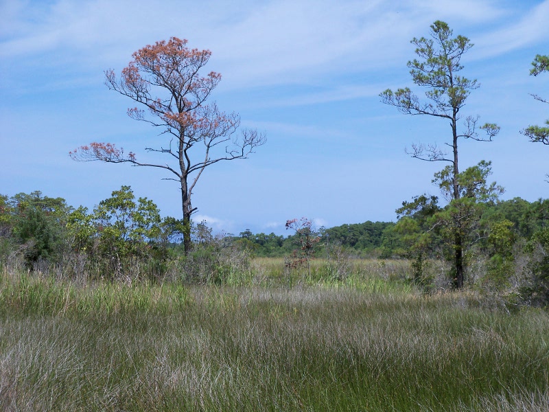continued out of the woods through a marshy area (left below) and ended