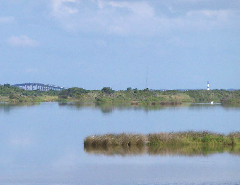 apparently a lot of weekenders. Saturday August 20: After breakfast, we wiped down the tent (it was still cloudy so it didn’t dry much on its own), packed up and drove across the Herbert C. Bonner Bridge over the Oregon Inlet (the bridge apparently survived Hurricane Irene and the inlet was dredged and enlarged by the storm) to meet good friends Krystal and Nathan at Pea Island Wildlife Refuge - where we got eaten alive. It sounded