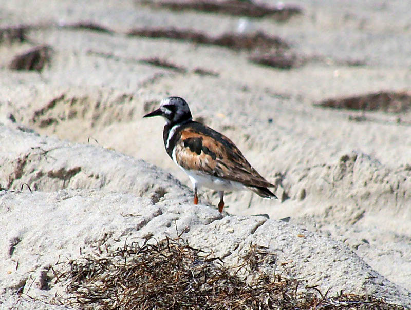 side. Friday August 19: We had been awake much of the night during the thunder and lightning so we didn't get up until 8 AM. After breakfast we went down to the beach again, watched the pelicans dive (above, left - to watch them in action click the image) and the sandpipers running about (to the right is a ruddy turnstone). John also found a Moon jelly (which I identified later at the lighthouse display) but I failed to take its picture. ![]() After