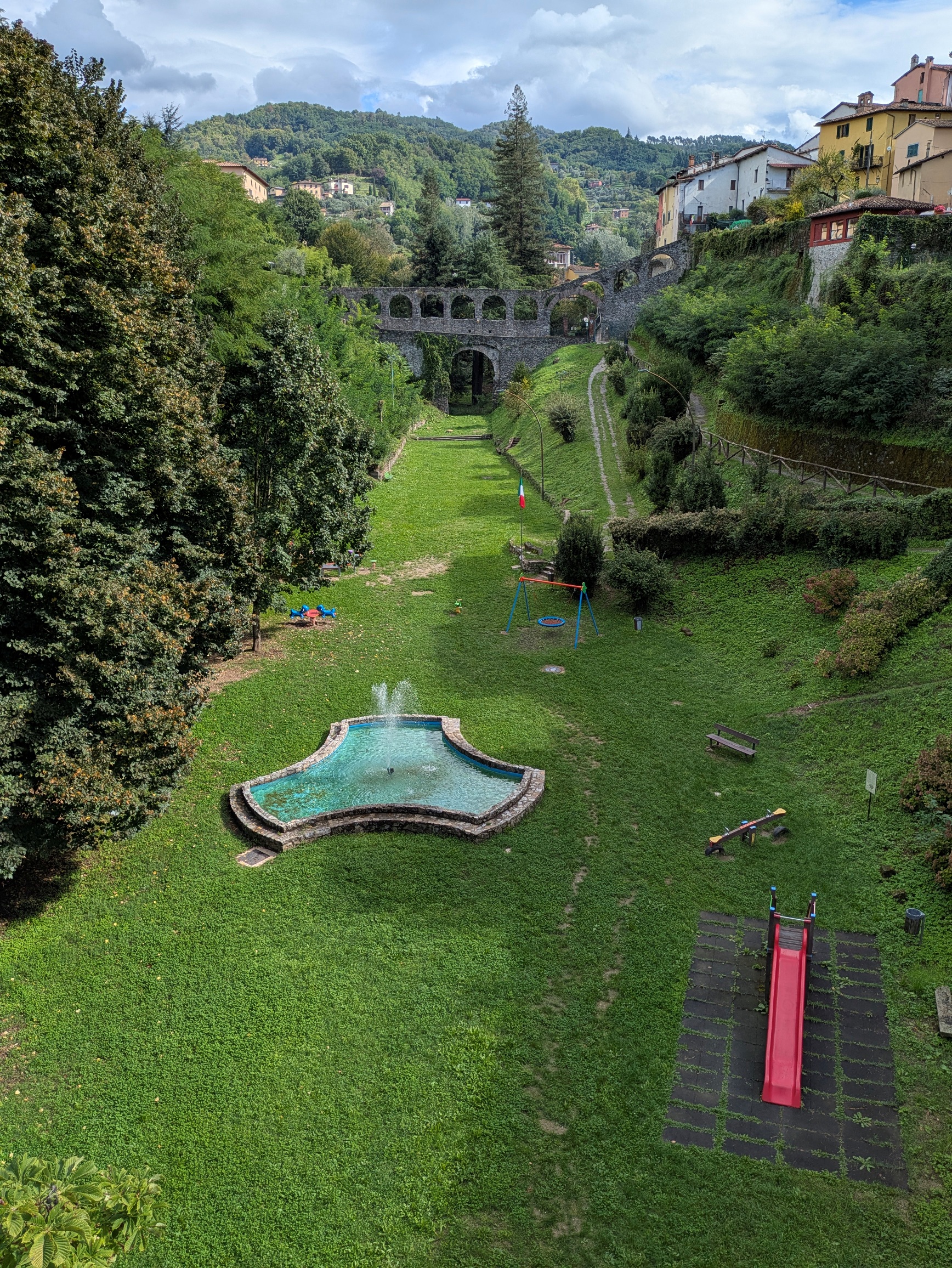 down to the aquaduct which oversees a large public park, the Kennedy