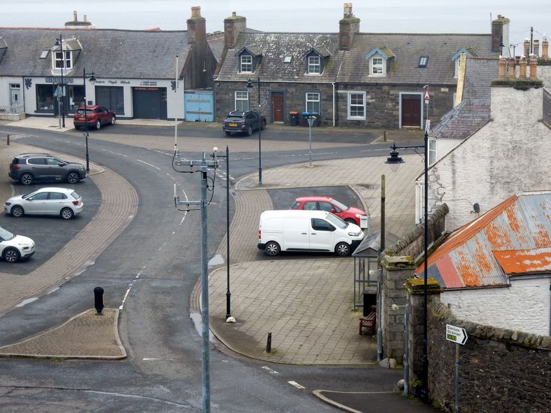 Scotland -- Picture of our cottage (with the garbage bins in front) from Maxwell Park