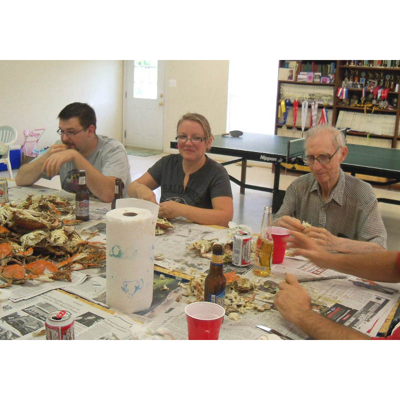 to the Old Country Buffet in Waldorf for dinnerMonday morning John admired the garden worms my Dad raises (we have a couple of tubs of red wigglers at our house, too) and we got in a couple more hands of bridge before we left for Germantown after lunch.